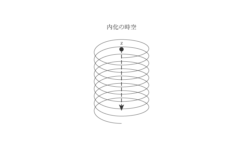 現象的には慣習的に繰り返す時空にあって、認知内容をより深みへと進める(z)、つまり「今此処の運動」である。静態にして、それは立体的(解釈性、修辞性、蓄積性等)運動だ。
